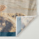 Baby shower tapestry with a scenic photo. A big starfish set upright on a sandy beach. A beautiful blue sea with waves of white surf in the background.