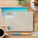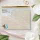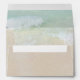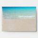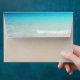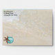 Christmas envelopes with a beach theme. The beach and ocean water are the background which covers this size A7 greeting card envelope on all sides. A starfish and aqua blue Christmas ornament decorate the front corner. Include a return address on the front, or delete the sample text. Inside also contains a pretty tropical water image.