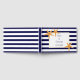 Pair of starfish and navy blue, white striped pattern wedding guest book. A modern beach summer wedding design that features starfish, a white frame with gold outline with your text and a striped pattern border.