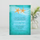 Starfish pair and veil turquoise tropical destination beach wedding invitation featuring a couple of orange starfish on a white waved veil on turquoise blue and teal grunge stained background. This modern aqua wedding invitation design is part of a wedding set or wedding collection and is a fully customisable template perfect for a destination beach summer wedding.
