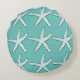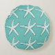 Starfish Pattern Beach Coastal Teal Blue Christmas Round Cushion