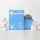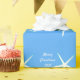 Printed with white & teal starfish patterns in blue background with text template for 'Merry Christmas' and year!