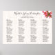 Light wood design seating chart poster with starfish and plumeria. Size 36 x 24 inches, this chart template lists guests in printed, black text beneath each reception table number - up to twelve. Pink plumeria flowers are wrapped around a brown sea star / starfish and decorates the top right-hand corner. The names of the newlyweds are at the top in modern handwritten script, with date and location of event. Remove table sections as needed. With twelve tables and eight lines beneath each table, seat up to 96 guests, or more, if names are double up, such as using “Mr. and Mrs.” or adding couples together.
