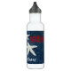 This water bottle is all patriotic red, white and blue. Four white starfish and red USA on a deep blue background gives it a nautical feel. It is All American for the beach life. Personalise with a Name and customise the bottle colour.
