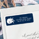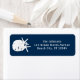Coastal themed return address label features a white sand dollar and 2 starfish, with a classic navy blue background.