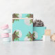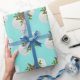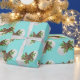 Beach Christmas design on quality roll of gift wrap. Starfish with green holly leaves and two sand dollars is the pattern that covers tropical blue paper.