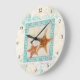 Starfish Sea Shells Ocean Greek Key Pattern Beach Large Clock