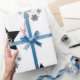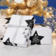 Classic black and white wrapping paper. Custom imagery of the Christmas tree inside a star with snowflakes.