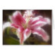 Delicate and glowing in the sunlight, this macro photo of a pink and white speckled stargazer lily is extravagantly beautiful. Details of this gorgeous flower are in sharp focus as the soft background lets this dramatic flower bask in the limelight of this elegant picture.