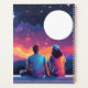 A beautiful digital painting of a couple sitting on a rooftop at night, gazing at the stars. The sky is filled with stars of all colours, and the Milky Way is visible in the distance. The couple is sitting close together, and they look like they are enjoying each other's company and the beauty of the night sky.