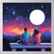 A beautiful digital painting of a couple sitting on a rooftop at night, gazing at the stars. The sky is filled with stars of all colours, and the Milky Way is visible in the distance. The couple is sitting close together, and they look like they are enjoying each other's company and the beauty of the night sky.