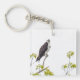 An osprey stands perched on a branch, gazing at the photographer, amidst early spring leaves.