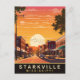 Starkville postcard. Sunset over the city in Mississippi. Starkville downtown. Illustrated travel postcard in vibrant colours.
