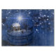 Inside a snow globe is a winter landscape with a cottage overshadowed by bare maple and cherry trees. In the windows of the little house candles burn, and on the lawn a Christmas tree sparkles with red and gold. It's an evening at Christmastime, and the lights of a thousand tiny stars fill the globe, with one great Christmas star filling the night with its rays, while the warm beams from inside the cottage light up the surrounding landscape.