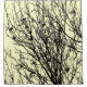 A high contrast black and white photo of a small group of starlings sitting in the branches of a tree on a winter afternoon in the UK, where many migrate to escape the colder winters of northern Europe. The background colour of this design can also be customised making it adaptable to practically any colour scheme.