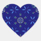 This artwork features a vibrant and symmetrical abstract pattern set against a deep indigo blue background. The design combines floral and geometric elements, with luminous petal-like shapes arranged in radial formations, resembling stylized flowers or starbursts. These petals glow in shades of electric blue with subtle green outlines, creating a dynamic sense of depth and energy. Scattered between the larger motifs are small clusters of iridescent, bubble-like orbs in rainbow hues - red, teal, pink, and green - adding a playful and futuristic touch. At the center of the composition is a kaleidoscopic mandala-like formation made up of these same glowing spheres, anchoring the design and enhancing its hypnotic symmetry.