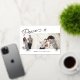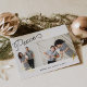 Elegant and modern holiday photo card features two favourite photos aligned side by side, with "Peace" in black handwritten style monoline script typography, accented with hand drawn stars in shining gold foil. Personalise with your custom greeting and name in a mix of italic and block lettering. Card reverses to a snowfall pattern in white on black.