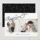 Elegant and modern holiday photo card features two favourite photos aligned side by side, with "Rejoice" in black handwritten style monoline script typography, accented with hand drawn stars in faux gold. Personalise with your custom greeting and name in a mix of italic and block lettering. Card reverses to a snowfall pattern in white on black.NOTE: No gold foil will be printed on this product. This design has a printed effect that uses subtle colour variations to mimic gold foil.