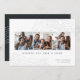 Love the personalization. It is unique in design from commercial products. Looking forward to sending this greeting to my good friends at holiday time. Makes a statement. The design and printing are terrific. The script writing is perfect. Color and quality of paper is a plus. I will be very proud to send this greeting.