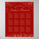 Red and gold Starry sparkle special occasion seating chart set up for 12 tables of 8. Additional names and tables can be added and align as needed.