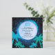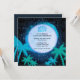 A handsome design that's perfect for an evening seaside party. The deep blue background has subtle writing of the words "Beach Party" and features stars, palm trees and a sphere to hold your personalisation.