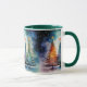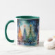 Embrace the magic of a winter night with this beautiful ceramic mug, featuring a stunning scene inspired by the Antarctic sky. The background displays a dark, starry night with shades of black and green, dotted with sparkling stars. Soft white clouds drift over festive Christmas trees decorated in matching sky colours, each topped with a golden star, creating a snowy, serene atmosphere. Perfect for cosy winter nights and Christmas celebrations, this mug is ideal for holiday enthusiasts who love unique seasonal designs.