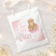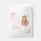 Celebrate your child's birthday party with these pink glittery starry dream big little one party favour bags featuring a sleepy brown bear wearing a pink crown sitting on a sparkly cloud.