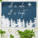 This starry night "all is calm all is bright" Christmas kitchen towel is the perfect religious holiday baking accessory. The design features a winter forest scene with a navy watercolor sky and a brightly shining star of bethlehem.