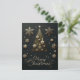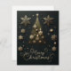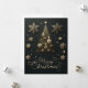 Celebrate the wonder of the holiday season with our Starry Night Black & Gold Christmas card. This card captures the essence of a tranquil winter's night with its deep, midnight-black background, providing a perfect stage for the symphony of gold that unfolds upon it. A central Christmas tree, crafted with a minimalist elegance, reaches upward, its branches dotted with delicate orbs and stars that sparkle like jewels against the night sky. Above, majestic snowflakes fall gently, each one intricately detailed and gilded with a touch of golden splendour. The timeless greeting 'Merry Christmas' is scribed in a graceful, flowing script that seems to dance along the bottom, its golden tones echoing the luminosity of the scene above. This card invites a touch of sophistication and warmth into the homes and hearts of those you cherish. Each card is accompanied by a crisp, white envelope, ready to convey your festive wishes with elegance and style.