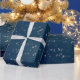 Starry Night Blue Navy Dots Grey Silver Confetti Wrapping Paper