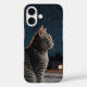 A peaceful cat enjoying the magic of a starry night, ideal for dreamy and relaxing phone case designs.