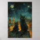 Starry Night Cats: Cosmic City Rooftop Art Poster
