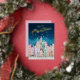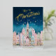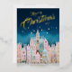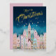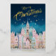 A peaceful winter townscape illustrated in gentle pastel colors, filled with cozy details and a timeless festive charm
