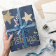 Illuminate your gifts with Starry Night Christmas. Set against a deep midnight blue, this design shimmers with golden stars and delicate gold snowflakes, while the words Merry Christmas glimmer softly across the sky.