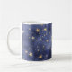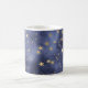 Watercolor illustration of a dark blue night sky with golden bright shining stars. Customize by adding your own text!