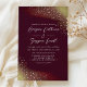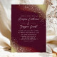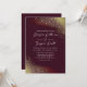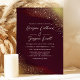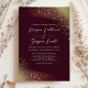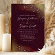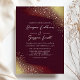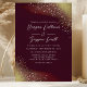 The 'Starry Night Deep Crimson Wedding Invitation' sets the stage for an evening of elegance under the cosmos. With a deep crimson canvas sprinkled with golden specks that shimmer like distant stars, it promises a wedding event filled with romance and splendour. The design captures the imagination, invoking the beauty of a clear night sky, and prepares guests for a sophisticated celebration. This invitation is a perfect prelude to a night where every detail is a reflection of the love story it honours, inviting guests to a celestial journey they will remember for years to come.