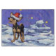 Animal Parade Festive Chihuahua Dog in a Santa Hat and Winter Landscape Holiday Gifts and Supplies feature our original art of a cute black and tan Chihuahua decked out for the holidays with a bright red Santa hat on his head and a festive green holly wreath on his butt with a cheery red bow. On many of the items, you'll find the cute dog coming and going. Our fun black and tan small dog stands in a snowy landscape with with a textured starry blue night sky painted by Traci Van Wagoner. This fun pet art is perfect for Chihuahua lovers, dog lovers, and humourous animal art lovers of all ages. Join the Animal Parade and bring a smile to the face of someone you love. Woof!