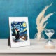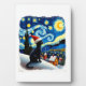 Starry Night Festive Christmas Black Cat Santa Hat Plaque