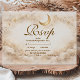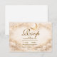A luminous celestial design featuring delicate crescent moons and scattered constellation stars across a warm parchment background. A refined gold border frames the composition, while elegant script typography creates a graceful focal point worthy of such a meaningful milestone. The soft ivory and champagne tones give the entire piece a timeless, radiant glow. Perfect for a quinceañera celebration that feels romantic, elevated, and touched by starlight.