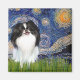 Starry Night by Vincent Van Gogh, now adapted to include a black and white Japanese Chin.