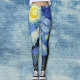 Fine art leggings with the painting by the Dutch artist Vincent van Gogh (1853-1890), Starry Night (1889). An evening landscape with a crescent moon in a swirled cloudy sky.