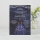 Starry Night Navy Blue Dress Silver Quinceañera Invitation