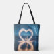 This shoulder tote design features a magical heart-shaped light with a serene swan at its centre, set against a mesmerising starry night sky, perfect for a romantic outing.