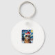 Starry Night Orange Tabby Cat Christmas Key Ring