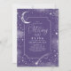 Silver and purple romantic mystical birthday party invitation featuring a crescent moon, shooting star and galaxies.