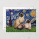 Starry Night - Two Siamese cats (Choc Pt) Postcard