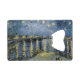 Thatched Cottages at Cordeville. Vincent Willem van Gogh. Night landscape in dark blue and yellow tones. There is a bridge across the river. In the foreground, a man and a woman are walking along the embankment. The stars are shining in the sky. Reproduction of famous works of art images in the public domain.