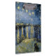 Thatched Cottages at Cordeville. Vincent Willem van Gogh. Night landscape in dark blue and yellow tones. There is a bridge across the river. In the foreground, a man and a woman are walking along the embankment. The stars are shining in the sky. Reproduction of famous works of art images in the public domain.