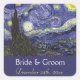 Starry Night wedding save the date stickers from bride and groom. Famous impressionism oil painting by Vincent van Gogh.