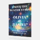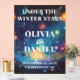 A dreamy frosted acrylic sign with twinkling star accents and moody navy tones. Perfect for celestial, cosmic, or night-themed winter weddings.